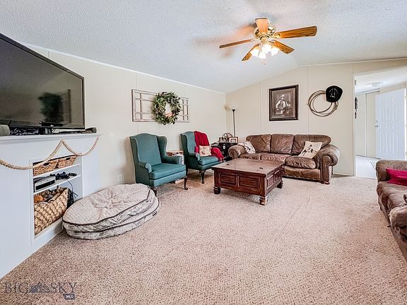 Incredible opportunity to own a home in the Gallatin Valley; currently, this is the least expensive home on the market. You do not want to miss this opportunity. This well-maintained Manufactured home has a very functional and spacious layout. As you enter the home, you enter the open-concept living room, dining area, and kitchen. Then there are 2 bedrooms and a full bathroom on one side and the primary bedroom and full bathroom on the other, offering privacy for all parties. There is also a large laundry/mud room with ample storage and shelving. There are two separate fenced yard areas, and a storage shed. The River Rock community offers parks, playgrounds, trail systems, and a large pond. Call your favorite real estate agent and view it today!