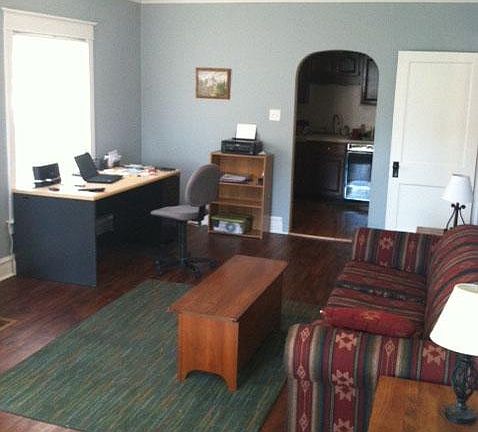 Remodeled Ranch Home Close to Guthrie Large yard / Garage with workshop or extra storage space / covered front deck with patio swing hooks Call today for a showing 570-731-4402
