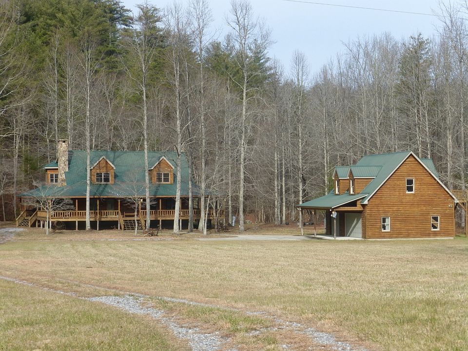 ONE OF A KIND!! Priced According to a Recent Appraisal! This Rustic Elegant Home has Very Unique Features which include, Hand Hewn Beams that are 100 Years Old, Antler Handles on the Interior Doors, Beautiful Lodge Style Lighting, Large Walk-in Master Shower, This Spacious Home with Cathedral Ceilings and 9' Ceilings also Boasts Two Masonry Fireplaces, Extra, Extra Large Loft with Balcony off of it, and Extra Large Upstairs Bedroom will Sleep all the Kids! 2 Back up Wall Heaters, Helton Creek is Wide like a River, Big Party Deck Outside with Gazebo, and Fire Pit, all Close to the Waterfront! 30'x40' Detached Garage with the start of an Apartment Above. Also an RV Hookup Area. Quality Built. Extraordinary Home in a Great Location.