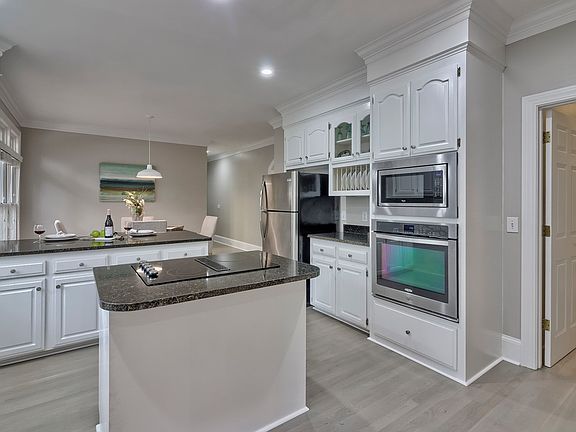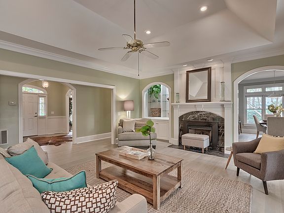 - Great Room: Molding, French Doors, Bookcase, Floors-Hardwood, Ceiling Fan, Recessed Lights