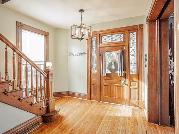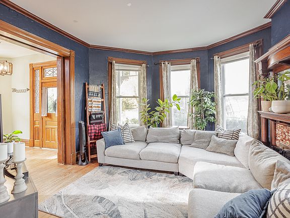 This beautiful Victorian build in 1896 is full of charm, character, and thoughtful updates throughout. Honored as a Ludlow Architectural Landmark, the large entry showcases stunning original woodwork, including an intricate newel post with a working lantern, setting the tone for the craftsmanship found in every room. You'll also find four wood-burning fireplaces, high ceilings, and plenty of natural light that highlight the home's vintage appeal.