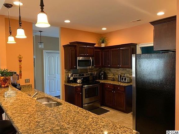 Beautiful home in the desirable subdivision of Hillsborough. This was once the model home and is the Crape Myrtle floorplan. This home has a 20 foot long front porch, wide entry foyer, split bedrooms, large dining room with tray ceiling, and a spacious and open living area with vaulted ceilings. The living area also has hardwood floors, a wall of windows and glass doors overlooking the 20x 10 rear patio and back yard, and adjacent to the 11x14 rear porch. Hot Tub on the rear patio will convey with the purchase of the home. The kitchen has 18" tile, solid wood cabinets and stainless steel appliances. Master bedroom has tray ceilings, a huge walk in closet, double sinks, a garden tub plus a separate walk in shower and tiled floor. Bedroom 2 & 3 are spacious. Bedroom 2 is currently being used as a office. Oversized fully finished 22 x 22 garage with door opener. Home has smooth ceilings, 30 yr architectural roof shingles, a sprinkler system and gutters. Conveniently close to the beach and to the historic river town of Conway. Square footage is approximate and not guaranteed. Buyer is responsible for verification. Seller is a Licensed SC Realtor.
