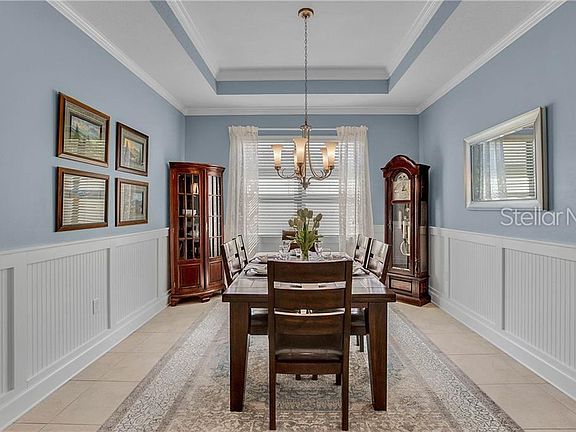 Welcome home to this beautiful waterfront residence in the amenity-rich Harbour Isles. Built in 2012 by Suarez Homes, it has been newly painted outside and in. Gorgeous custom wainscoting in entryway and dining room adds charm and exquisiteness. The stately dining room has tray ceilings, crown molding, and artistic columns. The gourmet eat-in kitchen features stainless steel appliances, upgraded wood cabinetry with crown molding and granite throughout. The first-floor master bedroom includes two walk-in closets, an ensuite bath with double sinks, shower and oversized garden tub. There are 3 remaining bedrooms on the first floor. Triple sliders lead to an oasis outside with the custom paver patio, designer landscaping, and rod iron fence. Don't miss the upstairs bonus room that could be a movie studio, 5th bedroom or even your own private workout space.