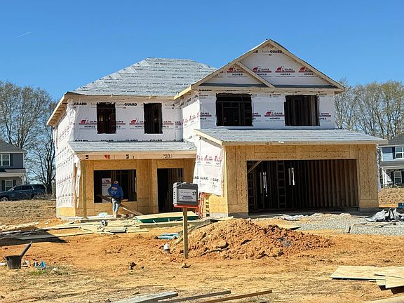 This two-story home features 5 bedrooms, 3.5 bathrooms across 2,628 square feet. At first sight you will be swept off your feet by the charming stone, vinyl exterior and the covered porch! Upon entering, you'll immediately notice the thoughtfully designed layout. First floor features an entry foyer, 9 ft smooth ceilings throughout the home and upgraded laminate flooring in the main living areas. You will adore the formal dining room with its trey ceiling, crown molding and wainscoting. Connecting to the modern kitchen featuring quartz countertops, ceramic tile backsplash, kitchen island, upgraded stainless steel appliances and a window above the sink for bird watching. Step across the cozy living area featuring an elegant gas fireplace, recessed lighting and ceiling fan to find the generous first floor primary bedroom. You will adore the trey ceilings, recessed lighting, ceiling fan and walk in closet. The Primary bath is a step into luxury with its ceramic tile shower, garden tub for soaking after a long hard day, double vanities and a water closet. Exploring upstairs you will find 4 additional bedrooms with ample closet space, 2 full bathrooms, laundry room and a spacious bonus room. The home also features a finished two car garage with door opener and a captivating back patio.