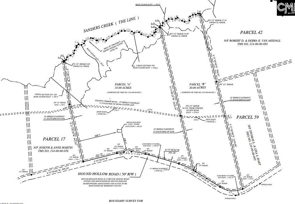 Property located in Hound Hollow subdivision located in South Carolina horse country. Easy Access to Hunt Club. Located minutes away from downtown Historic Camden, SC this 20 acre property (parcel B) borders Sanders Creek which has water flowing year round. There are hardwoods and pines throughout this beautiful property to enjoy year round. Hound Hollow offers miles of bridle trails for all community residents and covenants further protect your capital investment as well as the aesthetic beauty of the community.