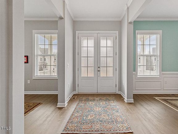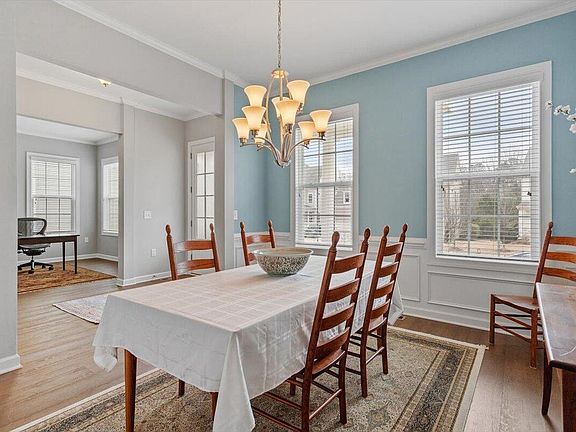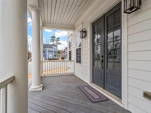 Tucked away on a corner culdesac lot in the coveted, amenity-rich Woodcreek subdivision, prepare to fall in love with this stately Southern Traditional style charmer! No detail has been overlooked in cultivating this inviting space, ideal for both entertaining and comfortable living. Tons of natural light flood the formal dining room making for an impressive entrance. The upgraded Mohawk LVP flooring throughout the first floor is eye-catching and made to last. Spend some extra time in the sprawling great room admiring the chefs kitchen, featuring top of the line Bosch appliances and an oversized island. This plan includes a first floor office as well, designed for potential easy renovation into a bedroom and en suite bath to accommodate multi-generational living. Relaxation awaits on the beautiful screened in back porch with lots of space for activities in the privacy fenced backyard. The new carpet feels luxurious under the feet as you reach the spacious second floor landing. This level hosts incredible living spaces — a stunning balcony, the primary suite complete with a cozy seating area, spa bath, and dual closets, two secondary bedrooms, joined by a shared bathroom, the laundry room and a large flex space.  The third floor retreat is a perfectly private 4th bedroom and ensuite bath. Be sure not to miss the oversized garage, spacious enough accommodate larger vehicles with extra space for storage! With easy access to RTP, RDU Airport, and 540, this location offers tons of convenience. Enjoy all of this PLUS amazing neighborhood amenities — a big grassy common area in the culdesac, a huge clubhouse, playground, pool, lazy river, and tennis/pickleball courts! This home is a dream.