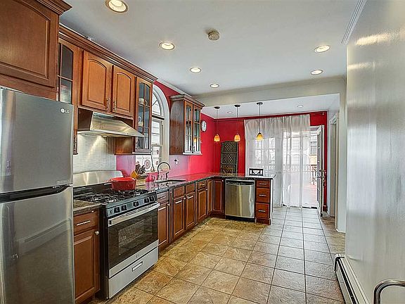 Rare Victorian, 5 bedrooms, and 2.5 bathrooms single-family house located just 10 min walk to Harrison Path Station! Located on a corner lot, this home is situated across the majestic Holy Cross Church. Characteristics include large rooms throughout, stained glass windows, first-floor living/dining/powder room/kitchen with direct access to the deck and backyard. All bedrooms are bright and airy and additional rooms on the top floor with a fully renovated bathroom. Additional features include new roof/gutters, new sidewalk, newer central gas hear (2018), Nest Smart Thermostat w/remote connectivity, newer water heater (2018). Easy commute to NYC via the newly renovated $256MM Harrison Path station just a short distance away. Enjoy the best of Harrison's vibrant scene with parks (West Hudson Park), groceries (Bjs, Whole Foods), dining, shopping, sports fields, and schools all nearby.