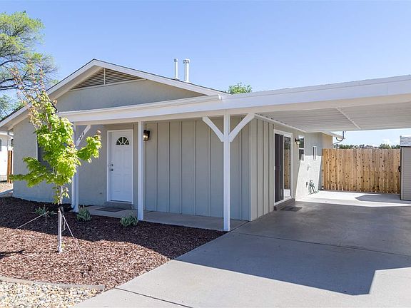 Perimeter lot home with views of the Sangre de Cristo Mountains! Very private with tons of space for outdoor living, including two patios. This home was meticulously remodeled in 2014, including a new kitchen, baths, flooring, fresh paint. New furnace, water heater and electric panel in 2012. All new appliances, roof, exterior doors, water softener and evaporative cooler in 2014. Fully fenced back yard with privacy fences on both sides and a double gate for RV parking. Rear fencing has multiple gates for access to the county land and trails. Completely landscaped with trees, grass and a xeriscaped front yard. Oversized 2 car detached garage with additional attached carport. Call for an appointment today!