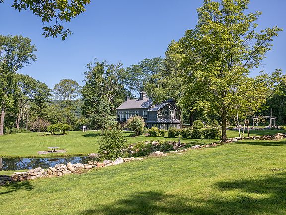 This 1797 Barn has been brilliantly given a new lease into the 21st century: the fulfilled vision of the designer-owners. It is new construction in almost every way yet its authentic heritage remains. The wonderful soaring ceiling, exposed hand hewn white oak posts and beams, barn siding, great open spaces, the silo.....these elements endure. Marry that with abundant large windows opening onto 3.6 verdoyante acres, French doors framed by mini-balconies for a flair of old europe, chic and contemporary but serene and functional kitchen and baths, new wide plank oak flooring, insulation, smart home technology and a park-like setting with pond, pool, gardens, and mountain views. Not much left on any home buyer's wish list. The open floor plan on the main level encompasses the living room with huge stone fireplace, dining area and a new kitchen with breakfast bar, stainless steel appliances, and marble countertops. Up a few steps is the master suite. It features a large sitting area and a bath (situated in the silo) with soaking tub, double vanity, a very spacious quarter-round shower; wardrobes, pantry and closets are made in Italy by Flou. One of two junior suites is on the upper level; a sitting area/loft overlooks the living room framed by sleek glass guardrails, leading onto the guest area. The bedroom is on the top of the silo and features a barn board ceiling. The full bath has a walk-in shower. On the lower level, is the other private suite with its bathroom in the silo, and direct views onto the beautiful landscape surrounding the pool. It has access to a 3-season sunroom. The media room (set up for projection or TV viewing and in wall JBL speakers) and laundry are also on the lower level that opens to the back portion of the property.The front of the house has a welcoming covered porch perfect for warm weather enjoyment, evening star-gazing, or just listening to the ever-changing songs of birds and cicadas. The entrance includes a mud room and an elegant vanity bath. The roof is seamed metal and is adorned with a cupola. There is a large storage shed/garage attached.The property is lovely and features a stone lined gunite pool, an orchard with rare American chestnuts, a landscaped pond and pergola, all set on sweeping lawns with ancient shade trees. Ideally located close to the village of Kent with its fine restaurants and art galleries, Lake Waramaug, hiking trails, Mohawk Mountain Ski Area, Bull's Bridge Golf and Metro North.