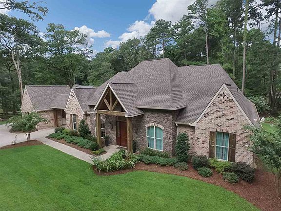 Own 2 acres of beautifully landscaped yard and woods along with a custom built home just off Highland Colony Parkway in Madison. The home features quartz and granite counter tops, birch wood flooring, massive kitchen/den/eating nook for the family and friends to gather. A large exposed wood beam helps define the tall ceilings in the main room and accentuate the stone fireplace. Windows to the backyard abound across the back of the family room and open to the large covered patio. Inset Shaker cabinets wrap the kitchen and are accented by under cabinet lights. There is an over sized laundry room next to the garage entry door for quick access with muddy or wet clothing. The laundry room has a sink and room for a refrigerator/freezer if needed. The owners have cut walking trails throughout the 2 acres for enjoyment of their friends and family. There is a private security gate with cameras and monitors at the front entrance to the home.