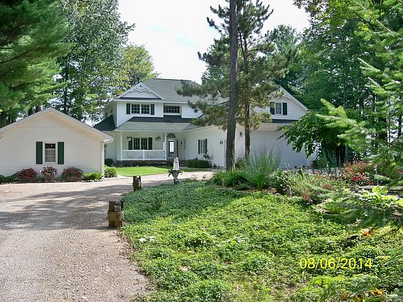 Wake up to the sun rising over the 6th most beautiful lake in the world….Higgins Lake. Offering this furnished Victorian style 2475 sq. ft. two story home built in 2003 on 135’ of “Gold Coast” lakefront. The most sought after area on the lake providing sandy beach and wonderful crystal clear water depth for both little tikes to play in near shore or water board from the end of a 160’ long aluminum dock with 16’ x 9’ deck to sun bath on. Inside, on main floor, are French doors opening into guest bedroom & private ceramic tiled bath + 3 bedrooms, loft, computer nook & two full ceramic tiled baths on 2nd floor. Master bedroom on 2nd floor has 6’ x 15’ covered balcony overlooking lake. On 1st floor, 9’ ceilings w/recessed lighting + Marvin “Integrity” casement windows & transom windows above give amazing light throughout. Seven rooms are provided with lake views including the Laundry Rm! A large dining area w/full wall of windows & patio door centered between the great room w/bay window & galley kitchen which includes trash compactor, disposal, DW & sink in the island counter + built-in-microwave, range & refrigerator on opposite wall with plenty of counter space & roll out base cabinet drawers. A folding counter + wall cabinets provide plenty of storage in Laundry Rm. Tiled half bath off mud hall. Kohler fixtures + 6 panel solid core doors throughout. Gas log, stone fireplace adds ambiance to the atmosphere. Attached insulated, heated garage w/ceiling height of 11’ can store a 24’pontoon, an 18’ pleasure boat + mini van. Detached 20 x 20 garage stores other toys. Relax on 14’ x 25½’ patio and watch the blue waters lap at the shore. Cement ramp to partially covered lakeside porch is a handy feature of this home as well as LeafX gutter guards to eliminate cleaning the gutters!!!