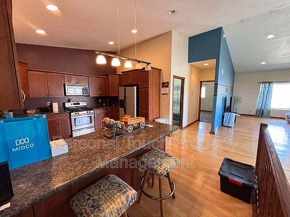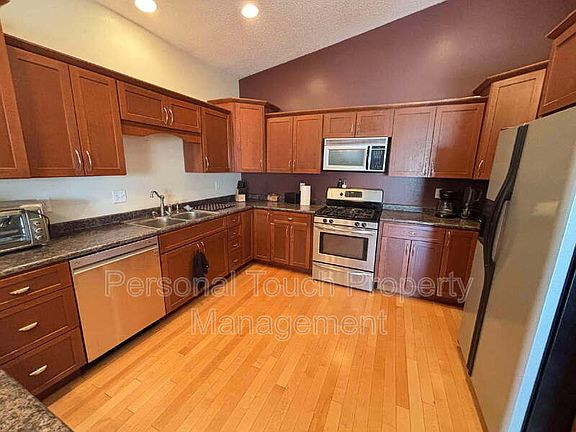 Welcome home to this spacious and inviting 3-bedroom, 2-bath split-level twinhome that offers room to relax, play, and grow. As you enter, you're greeted by an open-concept floorplan on the upper level, where vaulted ceilings and wide window ledges create a bright and airy feelperfect for your favorite plants or personal touches. The heart of the home is the large living area that flows seamlessly into the dining and kitchen spaces, complete with stainless steel appliances and a gas stove any home cook will love. Just off the living room, you'll find a generous upper deckideal for summer dinners, morning coffee, or simply soaking in the sunshine. Downstairs, cozy up in the family room with built-in cabinets for added charm and function. The plush carpet adds warmth, while hardwood floors bring style and durability to the living areas, and with a full interior paint refresh scheduled, the space will feel even more polished and updated! Out back, enjoy one of the biggest perks of this home: a MASSIVE fully fenced-in backyard, complete with a giant brick patio under the deck and a large storage shed. Whether you're hosting a BBQ, playing fetch, or setting up a hammock, you'll have all the space you need to make the most of outdoor living. The double-stall attached garage, abundant under-stair storage, and a walk-in closet in the primary bedroom provide practical conveniences that make everyday life easier. Plus, a washer and dryer are included for your comfort and ease. Located near parks, playgrounds, a dog park, convenience stores, and more, you'll have everything you need just minutes away. We welcome pets, too, with NO breed restrictions and a two-pet max with a 40 lb. weight limit. Nonrefundable pet fees and monthly pet rents apply. Enjoy peace of mind with a trusted management team backed by over 100 years of combined experience, skilled maintenance professionals, and after-hours emergency services. Plus, ask about our DEPOSIT-FREE move-in option to make your move even easier. Don't miss out on this one-of-a-kind homereach out today to schedule your tour! Pet Details: Pets are welcome with NO breed restrictions! A max of 2 pets per household with a 40lb. weight limit & non-refundable pet fee(s)/monthly pet rent(s) apply.