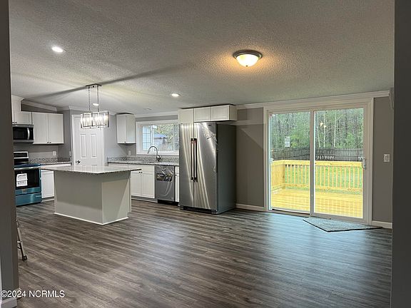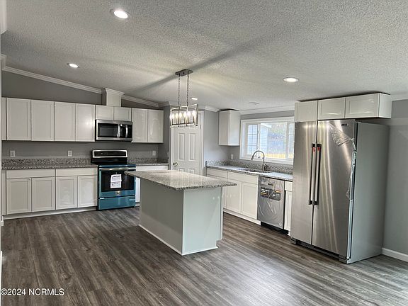 This is a must see! Totally remodeled! New HVAC! New Roof! New appliances! Features 5 bed/2 bath, new kitchen with granite countertops and island, all SS appliances convey. Large soaking tub in primary bath. Big 12 x 12 rear deck for entertaining or relaxing. Almost 3/4 acre lot with privacy fence with detached storage building and shed. Home has new all new flooring and paint. Located just minutes away from schools, shopping, future new bypass, Cherry Point and close to the Crystal Coast! Broker owned.