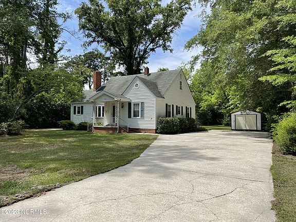 This quaint cottage-style home is situated on a picturesque street within a quiet neighborhood on the outskirts of town. It would not take much to spruce up this sweet home and make it yours! 2 nice sized bedrooms, 1 bath, a huge, walk-in storage closet that is the size of a small bedroom. Formal dining room, and the laundry area has it's own room as well. This home is complete on nearly half an acre of lush green land and a large dog kennel in the back yard! **Home being sold AS-IS, please note that the big metal white building with the red border does not convey with the property.