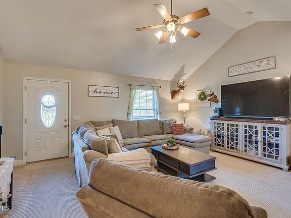 The updated kitchen features granite countertops, stainless steel appliances, hardwood floors, and a breakfast/coffee bar with open flow into the dining area—perfect for hosting friends and family. Just off the kitchen, you'll find a mudroom and laundry room. The spacious living room highlights vaulted ceilings, while the updated guest bath provides a fresh touch. The large master suite includes a remodeled bathroom with double sinks and a beautifully tiled shower, highlighted with modern finishes and an accent wall of shiplap.