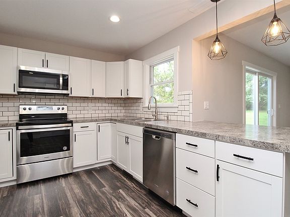 Absolute immaculate 3 bed, 2 bath, 1424 sq ft home nestled on a wooded 1.59 acre lot. Everything in this home is new, from the floor joists to the roof. New plumbing, drywall, electric, windows, roof, kitchen, flooring, heat & air. Open concept makes it feels much larger. Well designed custom kitchen comes equipped with new stainless steel appliances, cabinets, counter-tops, subway tile, back splash, and lighting. Barn door opens pantry for pantry access. The kitchen doesn't lack anything. Both bathrooms boasts beautiful custom tile showers. Convenient utility room is located close to bedrooms. Large covered front porch is perfect for those breath taking Indiana sunsets. Wooded back yard adds to the privacy of this home. Craftsmanship is the finest you will see!