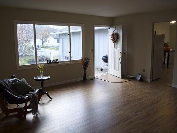 New paint inside and out. New flooring throughout. Cute yard with white picket fence. You'll love the homemade pies from your mature apple and crabapple trees. Exit the kitchen through glass sliding door and BBQ on south facing deck. The garage has been closed in - your choice: 1 car garage or a second den/living room or new master bedroom/BA.