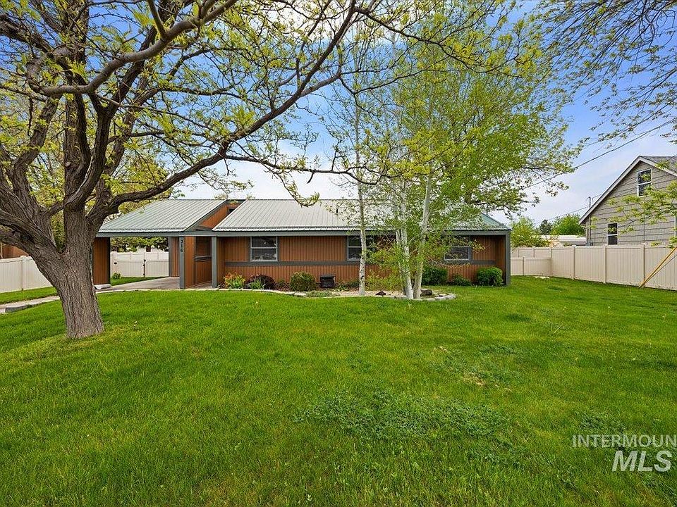 This charming home features 3 bedrooms, 2 baths, and abundant natural light. It boasts a renovated kitchen, master bath, new carpet, and blinds. Situated on a spacious lot with a lovely yard, it includes two storage sheds, with the larger one suitable for a small workshop. Relax on the trek deck or in the covered Perala area for family BBQs or gatherings. The house is equipped with a metal roof and steel siding, ensuring minimal maintenance. Additionally, it offers year-round customizable lighting. The lights are already installed, just requiring activation.