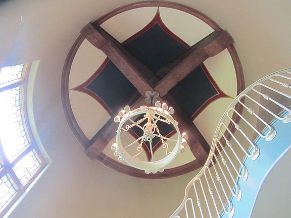 Built like a fortress...Shows like a dream! You will be greeted into the turret-style entry complete with stained glass, a winding staircase, beautiful dome ceiling with an original chandelier. You can delight in the spacious room sizes, magnificent woodwork, crown molding, wainscoting, rustic hand-hewn beams and some original light fixtures. Enjoy the fully applianced kitchen with granite countertop, center island, built in cookbook shelves & an abundance of maple cabinets with an attached breakfast room & butler's pantry. You will find a partially finished basement with family room, wet bar and an awesome laundry room. This home is for those of you who appreciate timeless traditional elegance.