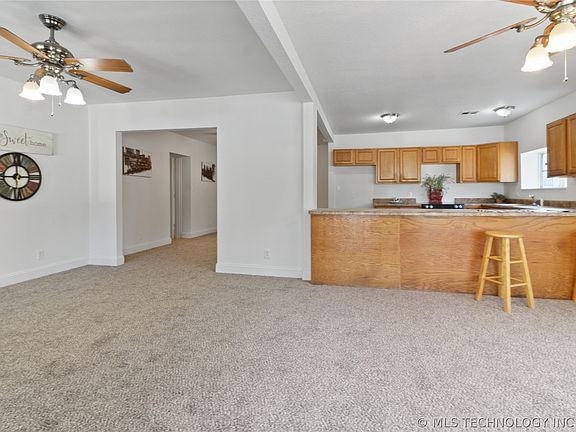City of sand springs, close to everything and only 15 minutes from downtown Tulsa! New paint inside and out, new carpet, new flooring, new roof, New HVAC! Extra storage building in back with new roof also! Large front covered porch.