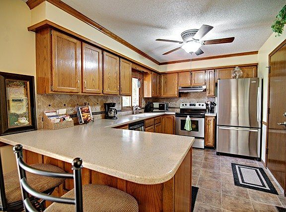 This recently updated impressive west-side 3 BR 2 BA 2 Car garage ranch home with 2 large living areas is an entertainerâs dream. The beauty and spaciousness of this home are immediately evident as you step into the foyer overlooking the vaulted sunken living room with wood burning fireplace. The spacious feeling continues as you move towards the open kitchen and dining area. The kitchen sports an eating bar, new backsplash, newer flooring and appliances that all stay including the refrigerator. There is also a new sliding door from the dining area to the outside deck. You can relax at the end of the day in the private master suite sporting an entire wall of closets and the Master Bath. Another bedroom and the Hall Bath round out the main level. The finished daylight basement includes a family room with wet bar and a decorative fireplace, in addition to the 4th bedroom, the 3rd Full Bath, large laundry area and lots of storage space. You will love spending time outdoors in the beautifully landscaped backyard complete with deck, brick patio and mature trees. New garage door and water heater. This home is neat & clean, totally move-in ready and is conveniently located close to schools, churches, restaurants & shopping. It is a must see for your list-schedule your private showing today.