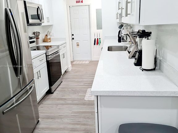 5 bedroom 3 bathroom home, located in West Miami Shores. This home features a split floor plan, with a chef's style kitchen, large white cabinets and white quartz countertops. It includes newer Central AC, and recessed lights throughout. Stainless steel appliances include side-by-side LG washer and dryer in the Laundry room and stainless steel oven, microwave and refrigerator in the kitchen. All bathrooms feature porcelain tile. There are two master bedrooms with their own bathrooms. The home has luxurious vinyl wood flooring throughout and each room has large closets. There is ample parking and a big backyard with room for a pool. All furniture included in the sale