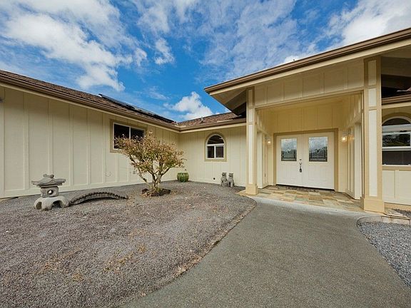A charming 3 BR 2BA open floor plan home in Hilolani Subdivision featuring vaulted ceilings, ceiling fans throughout, granite counter tops, interior laundry room with washer and dryer, and an owned photovoltaic system! Double doors into your master bedroom with a walk-in closet and double-sink vanity in master bath. Covered and tiled lanai in private setting and a temporary pavilion for additional gatherings or garden if you prefer. Surrounded by custom stone walls, partial aluminum fencing and rock gardens for minimal exterior maintenance. Conveniently located near shopping centers, markets, restaurants, gas stations, big box stores, and more - your upgrades and TLC will make this property your new home!