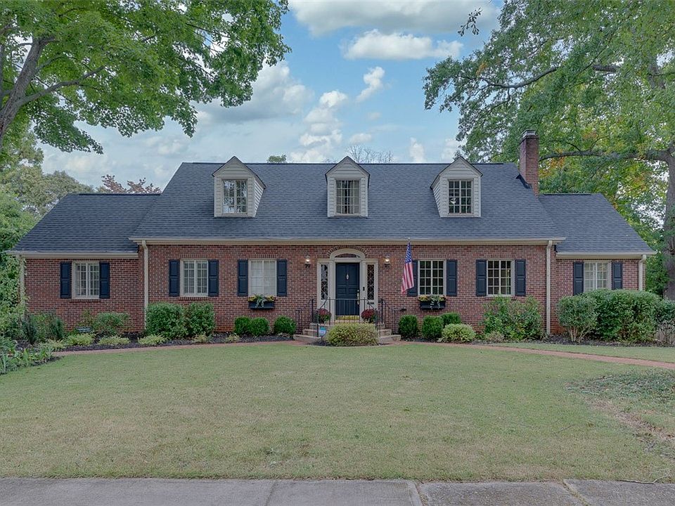 This beautiful brick home was designed by one of Anderson's prominent architects, Fred Ledbetter. He designed multiple houses on North Street, however this was his personal residence. This timeless home has been lovingly updated while maintaining and honoring its classic appeal. As you enter the front door, you are greeted with a grand staircase in an oversized, two story foyer that leads into the formal living room with a gas fireplace and built-in shelves. Original narrow strip hardwood floors are found throughout the first and second levels along with unique architectural features such as the decorative moldings on the mantels, a stained glass window, wainscotting, and more. Adjacent to the formal living room is a bright and airy sunroom/office space that overlooks the stone patio and terraced backyard. The cozy den features a gas fireplace and built-ins and connects the sunroom to the formal dining room. The dining room features unique and high level finishes that contribute to the special appeal of this home. The kitchen and butler’s pantry has granite countertops and plentiful storage. The massive master bedroom suite, located on the main floor has a walk-in closet, linen closet, and full bath with large shower, ample counterspace, and double sinks. Moving upstairs, there are two large bedrooms with walk-in closets, a renovated full bath with original tile, and attic storage access. In the basement, there is a large, finished portion currently being used as a home gym. Additionally, there is a full bath, laundry, and abundance of storage. The basement's unfinished side is a great storage/workshop area that connects to the garage. This home has been stewarded well and is celebrating it’s 83rd birthday this year. Updates within the past two years include: new roof (September 2022), upstairs bathroom renovation, fresh paint in the whole upstairs, new flooring in sunroom and basement, all new toilets, new furnace (April 2022), and many more small updates and changes. This spacious, unique gem of a home is within walking distance of Anderson University, and Downtown Anderson but tucked away on a quiet street with amazing neighbors!
