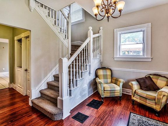 Picturesque home with white picket fence! Many updates inside and out at this large Victorian home with breathtaking view of the river. Fully-equipped kitchen with ceramic tile flooring, new Whirlpool refrigerator and microwave oven, new Bosch dishwasher, updated counter tops, and coffee bar. Newer flooring in entry, LR,DR and upstairs. Updated bar with granite counter and built-in shelves and glass rack. The large master suite offers a decorative fireplace, a walk-in closet and a completely remodeled master bathroom with tile floor, claw foot tub and a re-purposed vanity. Newer lighting fixtures throughout the home. Rebuilt front porch with new support beams & railing, new roof and sealed the concrete. Closet space galore in this old, but charming home. This home offers a normal floorplan with a den on the first floor and large room sizes. Oversized 2 car garage. Small yard in rear and fenced in front yard.