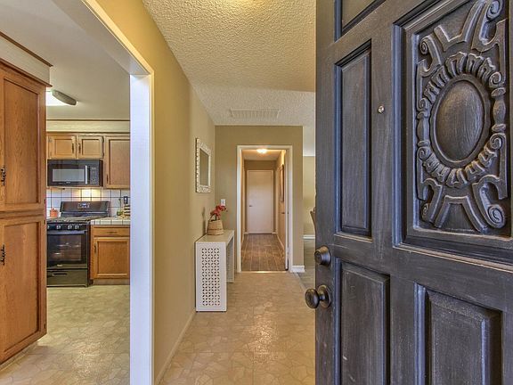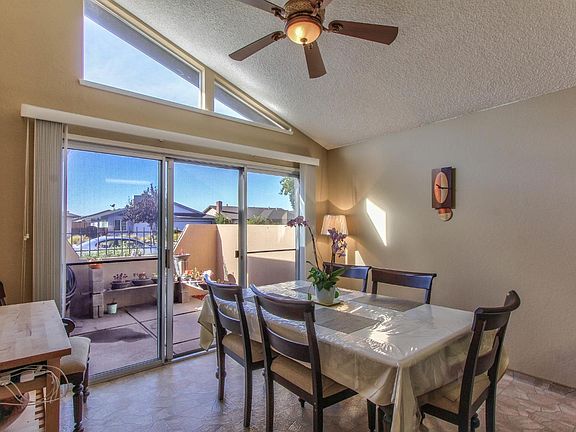 Beautiful & immaculate 2br/2ba Harrod built home! High ceilings & windows in the dining area brings in so much lighting to the kitchen with tiled counter & breakfast bar. Recently installed tile floors (that looks like hardwood) in living room & hallway. Living room also has fireplace and then 2 windows & glass slider leading to backyard patio to bring in even more light! Good sized master bedroom with walk in closet. 2nd bedroom has glass slider to the backyard also. Backyard features patio area, latticed areas for wind break & privacy, storage area for lawn mower,etc along with over sized custom shed for storage. Enjoy coffee in the sun in the front enclosed patio area too. 2 car garage has built in shelving, drawers, etc for even more storage. (SF/Age/Lot/School not verified by listing agent)