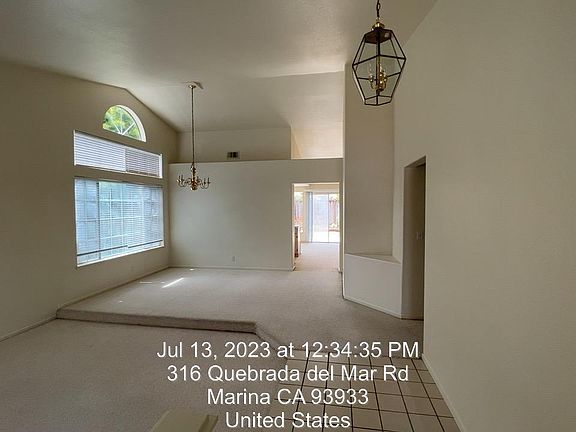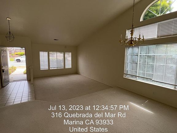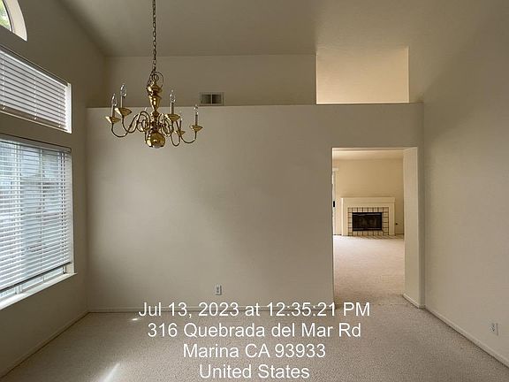 This 1668 square foot single family home has 3 bedrooms and 2.0 bathrooms. This home is located at 316 Quebrada Del Mar Rd, Marina, CA 93933.