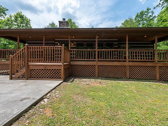 Spacious cabin style mountain home w/log siding and wood interior. Expansive vaulted great room open to dining room and kitchen comfortably accommodate large group gatherings. 2 over sized Master BR suites on opposite ends of great room on main level. Each BR complete with luxury bath including separate shower & whirlpool tub. One master suite features private screened porch. Downstairs is fully finished basement with high ceilings, finished in tongue & groove wood featuring large open rec room and second living room, 1 bath. Two bonus rooms generously accommodate additional guest. Rec room walks out to full size lower deck across back of home. Full size W/D in utility room. Adjoining lot can be purchased separately. Ideal floor plan for cabin rental or permanent mountain home.