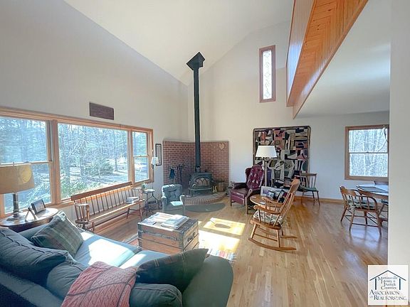 Off the beaten path,,quality built, like new home on 9+ secluded wooded acres. Foyer welcomes you to a warm & cozy living room with cathedral ceiling and wood burner. Dining area and kitchen with beautiful custom cabinets. French doors to back Trex Board deck 20'6"x 12'6" for entertaining & enjoying nature. Two bedrooms and full bath on main floor. Second floor has family room, master bedroom with two walk-in closets and master bath with double sinks, jetted tub and separate shower. Eagles Nest nook for office completes second floor. Basement has full bath and spacious bedroom with french doors. Oversized garage & workshop area. Decra Stone Coated Steel Roof. Walking trail to river. One could not begin to build a house of this caliber for this price on 9 acres of paradise