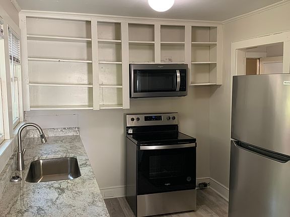 Quiet neighborhood, one bedroom apartment with hardwood floors, lots of windows, newly added central heat and air. Upstairs unit, one of three in triplex. Washer/dryer provided for tenants. Application required. Water, pest control and landscaping provided by owner. Non-smoking only. With pet approval, non-refundable pet deposit required at signing. Pet deposit $475 Washer and Dryer provided by owner. Off street parking.