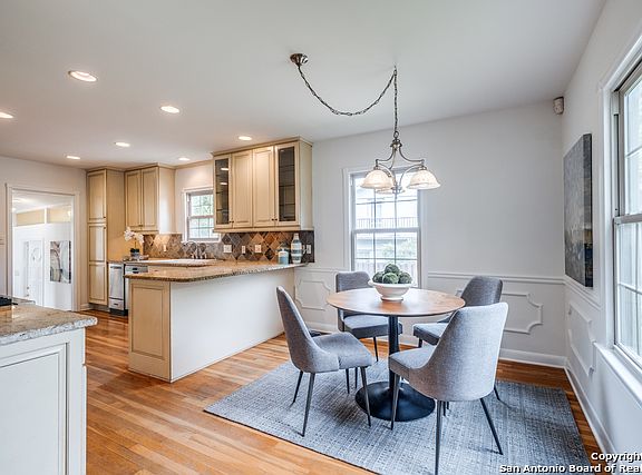 Wonderful Terrell Hills has just been completely repainted on the inside and is ready for immediate move-in! Located on a quiet, tree-lined street this house features 5 bedrooms/4.5 bathrooms, office, 2 living areas, large laundry room with sink, hardwood floors and much more! The kitchen has granite counters, 6 burner gas cooktop, built-in Kitchen Aid fridge and plenty of counter space. Sitting area and game room overlook sparkling pool and spa. Oversized attached 2 car garage has a bonus storage area and is right off the laundry room.