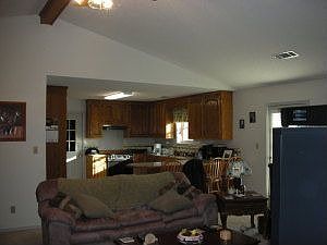 Very clean, well kept home, newer deck all across back, open living area, extra size double garage, front porch, huge back yard, blacktop drive