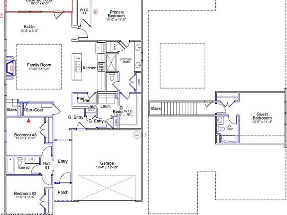 This Gwinnett is a one and a half story home featuring four bedrooms, three full baths with upstairs guest suite. The first-floor primary bedroom has two oversized walk-in closets, five-foot walk-in shower and two linen closets. The main living area is open with a spacious family room with tray ceiling and fireplace. The eat-In area is surrounded by windows. Kitchen includes large island with bar seating, walk-in pantry, white shaker cabinets, granite counters & stainless appliances. Upstairs you will find a guest suite with full bath and a walk-in attic. Outside enjoy the covered rear porch and fully sodded front & back yards.