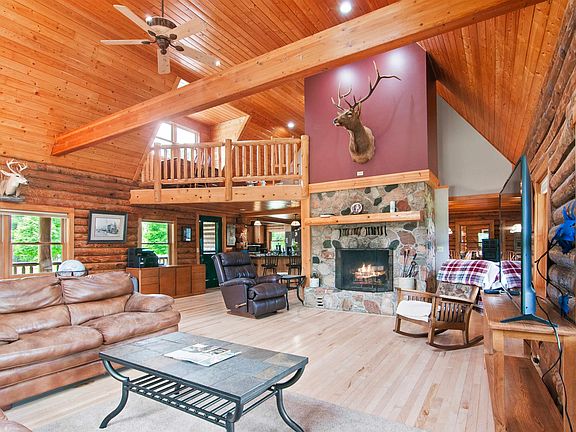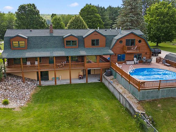 Exquisite Custom Log Home on 26 Acres with Luxurious Amenities! Welcome to your dream home! This custom log masterpiece boasts over 3,900 sq. ft. of finished living space, designed to impress. With 3 bedrooms and 4 bathrooms, there's room for everyone. The private master suite is a sanctuary, featuring a jetted tub, balcony, private bath, fireplace, sauna, and two spacious walk-in closets. Many recent updates including roof, Central Air, Furnace, appliances, flooring and more! Step into the grand living room with soaring ceilings and a stunning stone fireplace, perfect for cozy evenings. Enjoy the sunroom year-round or relax on the covered porches. The outdoor oasis includes an above-ground pool and a fenced yard, ideal for family fun. For the hobbyist or professional, the property includes a massive 4,096 sq. ft. building, perfect for an RV or boat, featuring in-floor heating and a bathroom, plus an outdoor wood boiler w/ propane back up providing efficient heating throughout. 56x32 area with 12 ft. ceilings 16x36 lean-to workshop 36x48 area with 16 ft. ceilings Plus, an additional 24x48 barn Nestled on 26.16 wooded acres, this property is a nature lover's paradise. With food plots, apple tree groves, private ponds, and abundant wildlife, it's a haven for outdoor enthusiasts. Just minutes from town and adjacent to thousands of acres of Manistee National Forest, adventure is always at your doorstep. Additional 10 acres available! Don’t miss this unique opportunity to own a piece of paradise. Schedule your tour today and experience the magic of this extraordinary property!