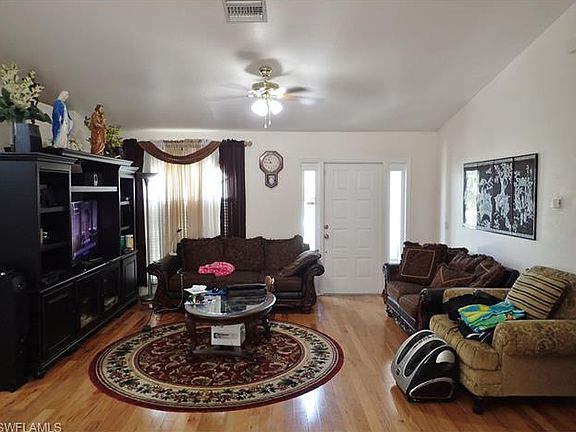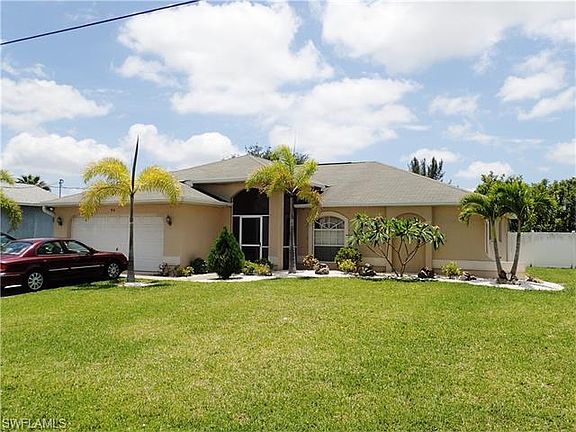 Conveniently located off of Santa Barbara Blvd with quick & easy access to Veteran's Memorial Parkway, your gateway to dining, shopping, entertainment and medical facilities. Situated in a nice established neighborhood with all city utilities in place and paid in full, flood zone X means NO flood insurance required, fenced back yard with storage shed and Southern exposure--plenty of room to add a pool. This 3 bedroom 2 bath home has real wood floors through out with tile in the bathrooms and the "bonus" room. The lanai has been converted to air conditioned living area for a total of 1725 square feet. This room is large and currently holds a formal dining table for 6 with extra cabinets with granite counters for storage and/or work space. With a great room design and split bedrooms, this flexible floor plan is great for comfortable, quiet days/nights at home or entertaining friends and family. The master bedroom has a tray ceiling with ceiling fan, 2 walk in closets and dual sinks with a walk in shower. You will enjoy the homey feeling as soon as you enter. Call for your private showing today!