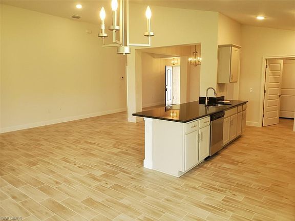 Open floor plan with 10 foot high ceilings; tile all except in Bedroom; beautiful French doors lead to large covered lanai; step ceiling in master bedroom; upgraded cabinets with stainless steel appliances. Cute front porch and the water assessments have been paid! Christmas In July - get the options you want with half off upgrades up to $10,000!
