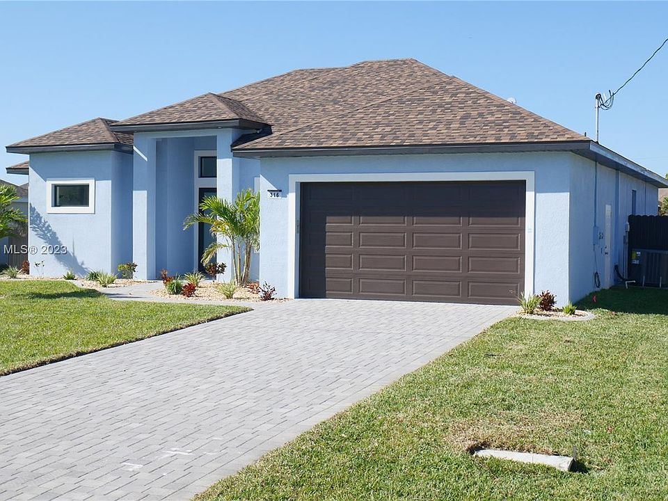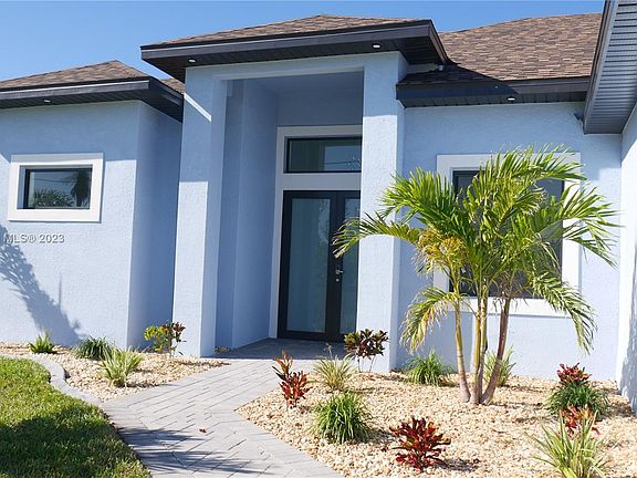 BRAND NEW 2023 pool home!! Modern open concept floor plan. 4 beds, 3 bathrooms with access to the pool. Spa-like master bathroom with smart mirrors, shower system with Rainfall Shower and Hand Shower. Walk in closets throughout the house with plenty of storage space. Hurricane impact widows and doors. Samsung Stainless kitchen appliances and high efficiency washer and dryer. Quartz kitchen counters. Smart electric switches and USB port outlets. Backyard with beautiful pool and kitchenette. Full irrigation system. 2 garage spaces with electric door with opener. City water and city sewer. Centrally located and easy access to Fort Myers, airports, and Southwest Florida's beautiful beaches. Schedule your showing today, owner motivated to sell!!