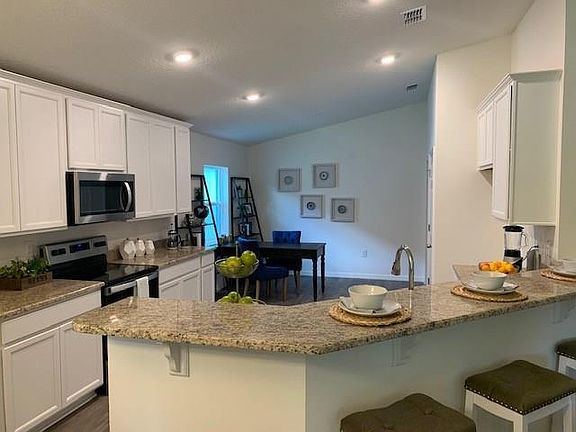 Messina Floor plan at 1885 Square Foot. This 3 bedroom, 2 bathroom home features a 2nd owners bathroom sink, 42" upper white cabinets in the kitchen, granite countertops throughout, Vinyl plank flooring and carpeted bedrooms, and stainless steel appliances, Gutters around the entire home.
