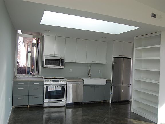 Brand new construction. Be the first to live in this modern, very cool apartment in a wonderful diverse neighborhood. Walk to downtown (3/4 mile) and Glenwood South (1 mile). You have to see this space to appreciate it! Look out from the open living area through a wall of glass into the large front patio surrounded by Ipe privacy screen and bamboo planter. Gas fireplace, modern kitchen, bright rooms. Polished concrete floors throughout, concrete counters. Two bedrooms (about 11' square each) and two bathrooms. The front yard is available for your use, the backyard is reserved for the rear apartment. Well behaved pets considered with an additional pet deposit.