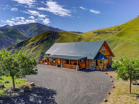 Extraordinary 55 acre property w/ a home & shop located just minutes away from downtown Riggins & the Salmon Rivers. Breathtaking views & sunrises from the 1865 sq ft, 3 bedroom, 2 bath, log home. $800k in recent improvements - boasting all new siding, extensive covered wrap around Trex decking, eucalyptus flooring, travertine tile, granite countertops, new kitchen cabinetry, Viking stainless steel appliances, high-end plumbing & lighting fixtures, new roof & MORE! Equipped w/ a shooting range & an 1800 sq ft shop w/ a 600 sq ft income producing apartment, fly tying room, ductless heating & cooling, wood stove, freezer room, work benches & a carport. Adjacent to 150+ acres of State of Idaho ground for outstanding chukar, quail, dove & game hunting. Exterior: Fully fenced, private driveway, dog kennel, cold cellar, apple, cherry, peach, plum, pear & apricot trees. 2 wells w/ new pump components, RV parking/hook-up. Additional build sites. 5 minutes from Riggins & salmon fishing! Must see to appreciate! BATVAI