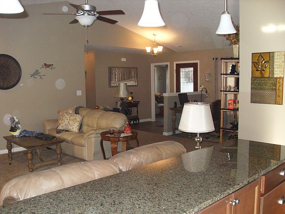 1 year old 3 bedroom 2 1/2 bath ranch style home. Large great room with cathedral ceilings and open kitchen area. Corner gas fireplace in huge great room leading to dining nook.and gourmet kitchen with 10' of oak cabinets dividing nook and living room. Granite countertops, extra large walk in pantry, stainless steel appliances, laundry room. Spacious master bedroom with trayed ceiling, extra large walk in closet, tile walk in shower. 10 x 20 covered patio for entertaining.