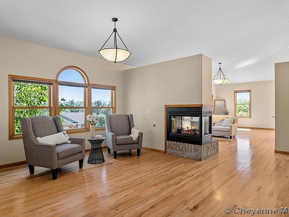 Private, executive retreat overlooking Cheyenne! Nestled on nearly 1/2 acre in prestigious North Cheyenne, this massive ranch style home boasts custom finishes throughout and gorgeous panoramic views of the city. Including 6 oversized bedrooms, 3 bathrooms and a large 3+ car heated garage, this expansive floorplan offers triple-sided fireplace, gleaming hardwoods with solid wood trim and doors. The new designer chef's kitchen features opulent hand-selected granite and stone, and a huge 8' showcase island with stainless appliance package and dual-fuel oven. The luxurious master suite includes a spa-like 5 piece bathroom with artisan stone, water closet, oversized jetted tub and DREAM walk-in closet. SO many extras, including heated driveway (!!), walk-out basement, main floor laundry, pantry, extra insulation, A/C, sprinkler, dual 50 gal. hot water heaters, all-brick exterior and heated garage with 10'+ceilings and an oversized 8.5' high overhead door. Bordered by over 8 acres of RARE city open space and trails!