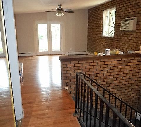 Large living room with exposed brick and new hard wood floors. Large eat-in kitchen with updated cabinets. Balcony off from living room is great for cool evenings. The bedrooms are on the lower level and offer great closet space. The bathroom has new vanity, flooring, tub surround and fixtures.