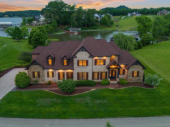 Experience luxurious lakefront living with this stunning one-owner, custom home located in the highly desirable, gated lakefront community of Lowes Ferry. Offering 4 bedrooms, 4.5 bathrooms, and a spacious bonus room, this meticulously maintained 4,770 sq ft residence sits on a rare, level 0.58-acre flat-to-the-water lot with direct personal lake access and 102 feet of shoreline. The main level features an elegant master suite with serene lake views and plantation shutters, as well as a private office complete with a full bathroom that can easily serve as an additional bedroom. Enjoy seamless indoor-outdoor living with a bright sunroom and a covered porch, perfect for relaxing or entertaining while overlooking the picturesque waterfront. The gourmet kitchen includes custom maple cabinetry and opens to a grand living area showcasing lake views and inviting natural light. Step outside to your private dock, equipped with a dual motor lift—perfect for effortless lake adventures. Recent updates include a 1-year-old roof, a 1-year-old water heater, & brand new irrigation pump providing added peace of mind. Residents of Lowes Ferry enjoy exclusive access to community amenities including a pool, clubhouse, and beautifully maintained common areas. This is a rare opportunity to own a lakefront retreat offering luxury, convenience to Maryville/Alcoa and Knoxville, and breathtaking views from almost every room in the home—all in one perfect package.