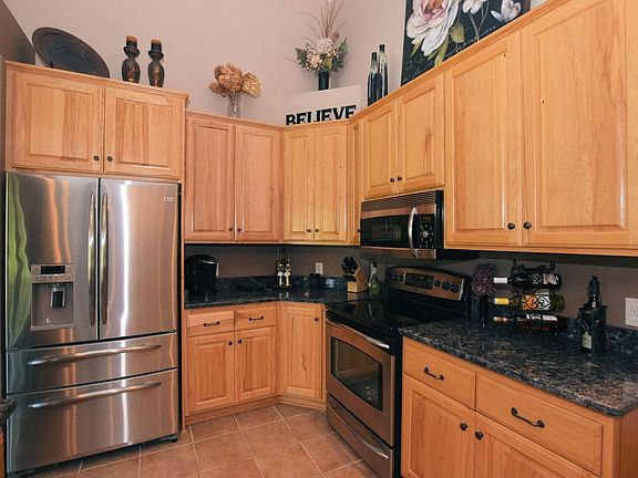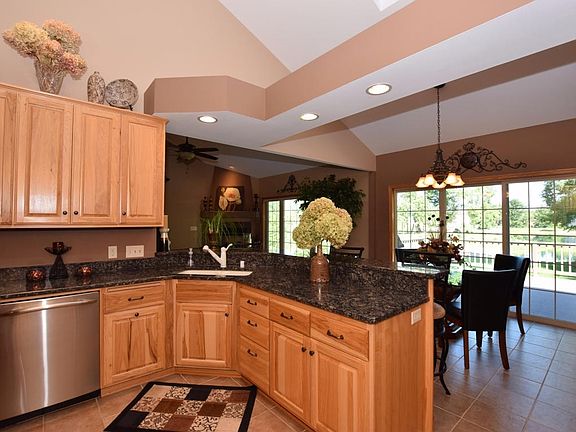 Lakefront split ranch leads you into the vaulted great room with gas fireplace. Dining area & kitchen have ceramic tile floors as well as granite counters & all appliances included & access to the 20 by 16 deck. Master suite has large ceramic shower, double sinks, whirlpool & large walk-in closet. 2 more bedrooms on the main floor, one with walk-in closet & full bath to share. Walk out lower has family room, bedroom & bath with access to the patio.