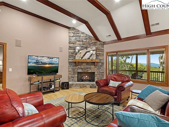 Outstanding home with Amazing Views, Level-Entry, 2-car garage and only 5 minutes to Main Street Blowing Rock. This Immaculate, Fully Furnished, move in ready home has all you have been looking for in a Blowing Rock home and only 3.5 miles from Main Street. Starting with easy level-entry from the 2-car garage, the main floor offers a spacious primary bedroom with en-suite, office or extra bedroom, an open floor plan for entertaining, living room with vaulted beam ceilings and a large covered deck with stone fireplace for those wonderful viewing days. Downstairs provides a 2nd living space, another covered deck, kitchenette, gym area or flex space, 2 bedrooms and 1.5 baths, stone fireplace with gas logs, infrared sauna, pool table and plenty of room to relax. This exceptionally well cared for home has so many new and extra features including: 3 fireplaces for the home, (2 inside and 1 on the deck) plus a firepit area in the fully sodded back yard, multiple view angles from the home, security system, underground pet fence, New Exterior Paint in 2022, paved driveways in 2022, stainless steel appliances, ample parking and so much more, ask for a detailed list of updates. This home has been updated in so many places, maintained from top to bottom and move in ready. Septic Pumped in Dec of 2020 - Radon Mitigation installed Dec of 2020.